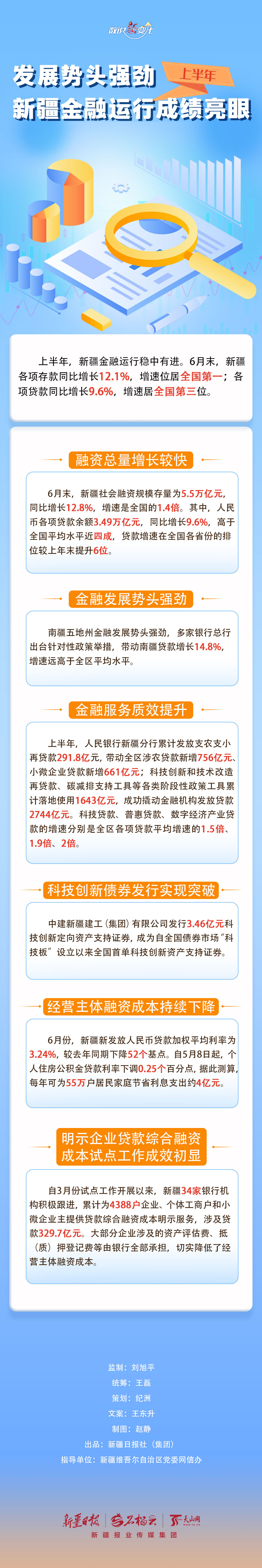 6月末,新疆各项存款同比增长12.1%,增速位居全国第一;各项贷款同比增长9.6%,增速居全国第三位。上半年玖富配资,新疆金融运行成绩是如何取得的?有哪些亮点?今天的《数说“新”变化》一起来看看。